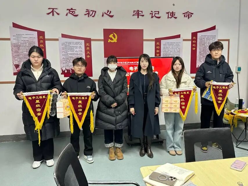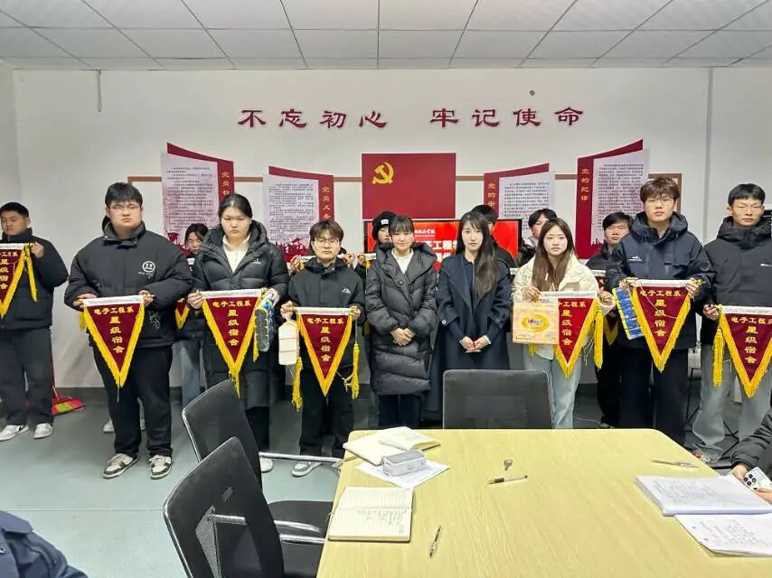為不斷進(jìn)一步增強(qiáng)電子工程學(xué)院學(xué)子們的衛(wèi)生意識(shí)和文明素養(yǎng),展現(xiàn)良好的校園形象,電子工程學(xué)院于2025年12月15日開展了“流動(dòng)紅旗”評(píng)比活動(dòng)。其中黨總支書記李玲玲、輔導(dǎo)員代表梁哲老師對(duì)優(yōu)秀宿舍頒發(fā)流動(dòng)紅旗,各班級(jí)班長、團(tuán)支書、學(xué)院生活部參與本次頒發(fā)儀式。