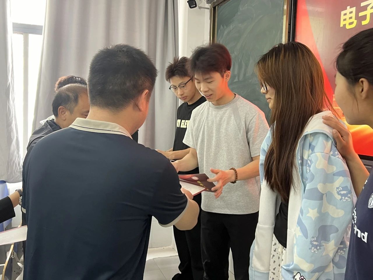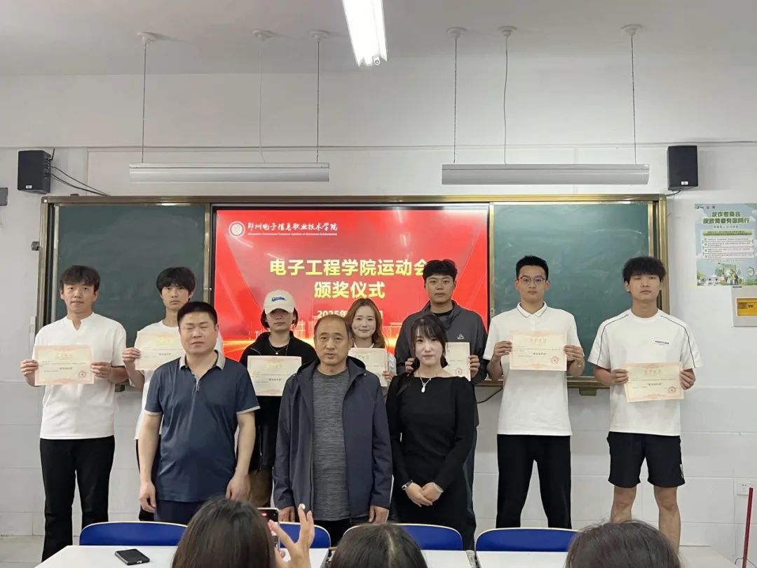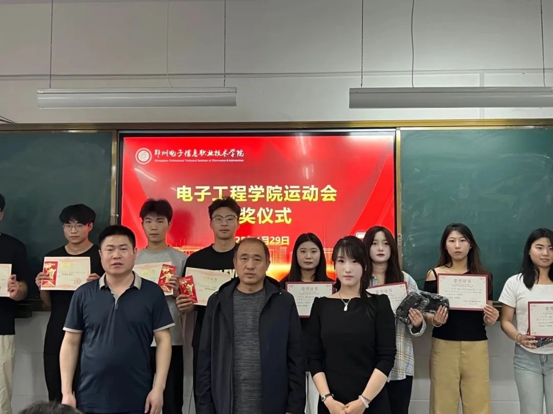 頒獎儀式上,電子工程學(xué)院黨總支書記王正偉、學(xué)生黨支部書記李玲玲、綜合辦公室主任田峰林參與這次頒獎。依次為在運動會中表現(xiàn)出色的運動員們頒發(fā)證書和獎品,表彰他們在賽場上的卓越和表現(xiàn)不懈努力。這些證書不僅是對運動員們個人成就的認可,更是對他們背后團隊協(xié)作和支持的肯定。運動員們臉上洋溢著自豪的笑容,手拿榮譽證書的那一刻,成為他們青春記憶中最閃耀的瞬間。