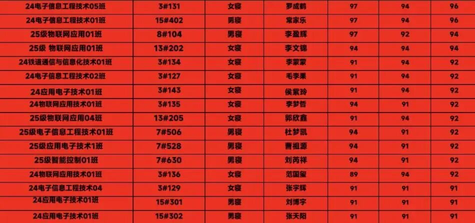 為不斷進(jìn)一步增強(qiáng)電子工程學(xué)院學(xué)子們的衛(wèi)生意識(shí)和文明素養(yǎng),展現(xiàn)良好的校園形象,電子工程學(xué)院于2025年12月15日開展了“流動(dòng)紅旗”評(píng)比活動(dòng)。其中黨總支書記李玲玲、輔導(dǎo)員代表梁哲老師對(duì)優(yōu)秀宿舍頒發(fā)流動(dòng)紅旗,各班級(jí)班長、團(tuán)支書、學(xué)院生活部參與本次頒發(fā)儀式。