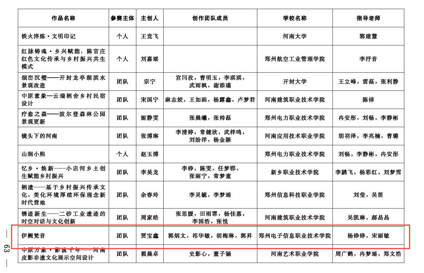 近日,備受矚目的 2025 河南省文化創(chuàng)意大賽獲獎名單終于正式揭曉。該賽事由多部門聯(lián)合主辦,以挖掘河南文化內(nèi)涵、助力文創(chuàng)產(chǎn)業(yè)發(fā)展為核心,為河南文化傳播添新動能。藝術學院在此次大賽中表現(xiàn)亮眼,藝術學院楊錚錚、宋麗敏、路娟、白清歌四位教師憑借扎實的文創(chuàng)教學功底與創(chuàng)新實踐能力,斬獲1項銀獎,3項銅獎:環(huán)藝設計作品《伊闕梵音》《八卦小策?新中式民宿設計》《時蘭》,獲得1項銀獎2項銅獎,平面設計作品《瑜美人》獲銅獎。