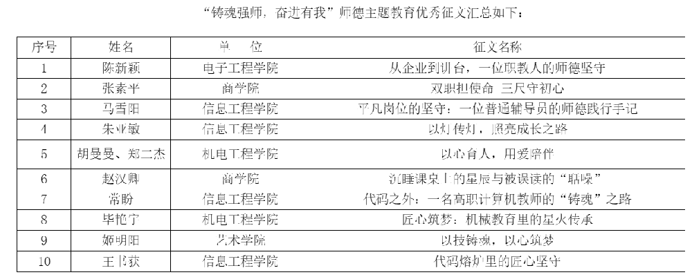 鄭州電子信息職業(yè)技術(shù)學(xué)院 關(guān)于“鑄魂強師,奮進有我”師德教育主題征文和師德師風(fēng)建設(shè)優(yōu)秀案例評選結(jié)果的公示